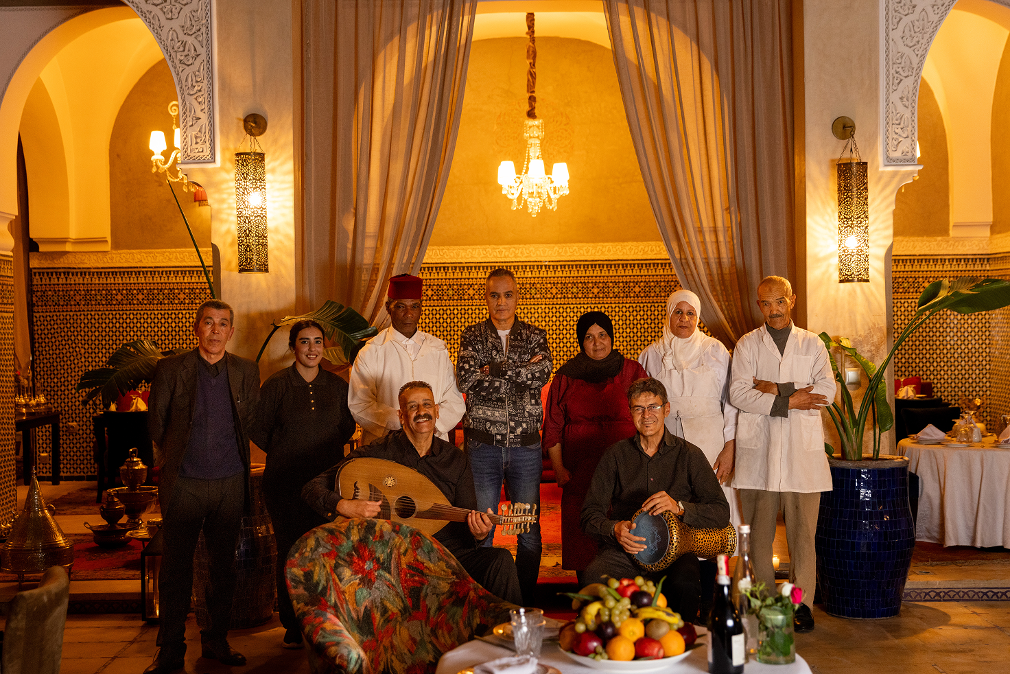 La Rôtisserie de la Paix est pensée pour les grandes tables : familles, collègues, bandes d’amis. On partage poulets, plats et accompagnements au centre, on pousse les tables, on parle fort, on rit. Les soirées s’étirent sous les arbres, et le jardin devient ce décor familier dont on garde le souvenir quand on pense à Guéliz : un endroit où l’on mange bien, où l’on se retrouve, et où l’on a toujours une bonne raison de revenir.